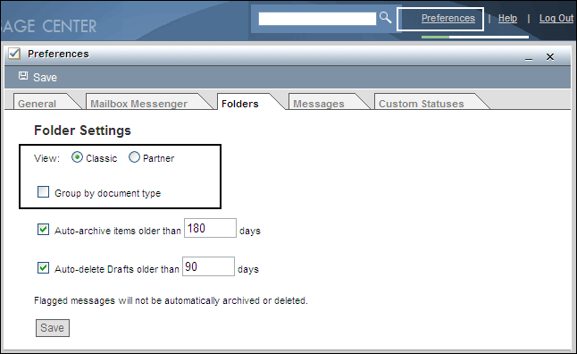 Like the trading partner view, the classic view supports the ability to break down the Inbox and Sent folders by document type. However, if you select this Group by Document Type option for the classic view, then, just as with the trading partner view, you are no longer able to create, delete, or move folders in the folder tree, nor can you move individual documents around. In addition, when the Group by Document Type option is selected, e-mail messages, because they have no document type assignment, will be found in the root Inbox and Sent folders; they will not have special subfolders created for them. |